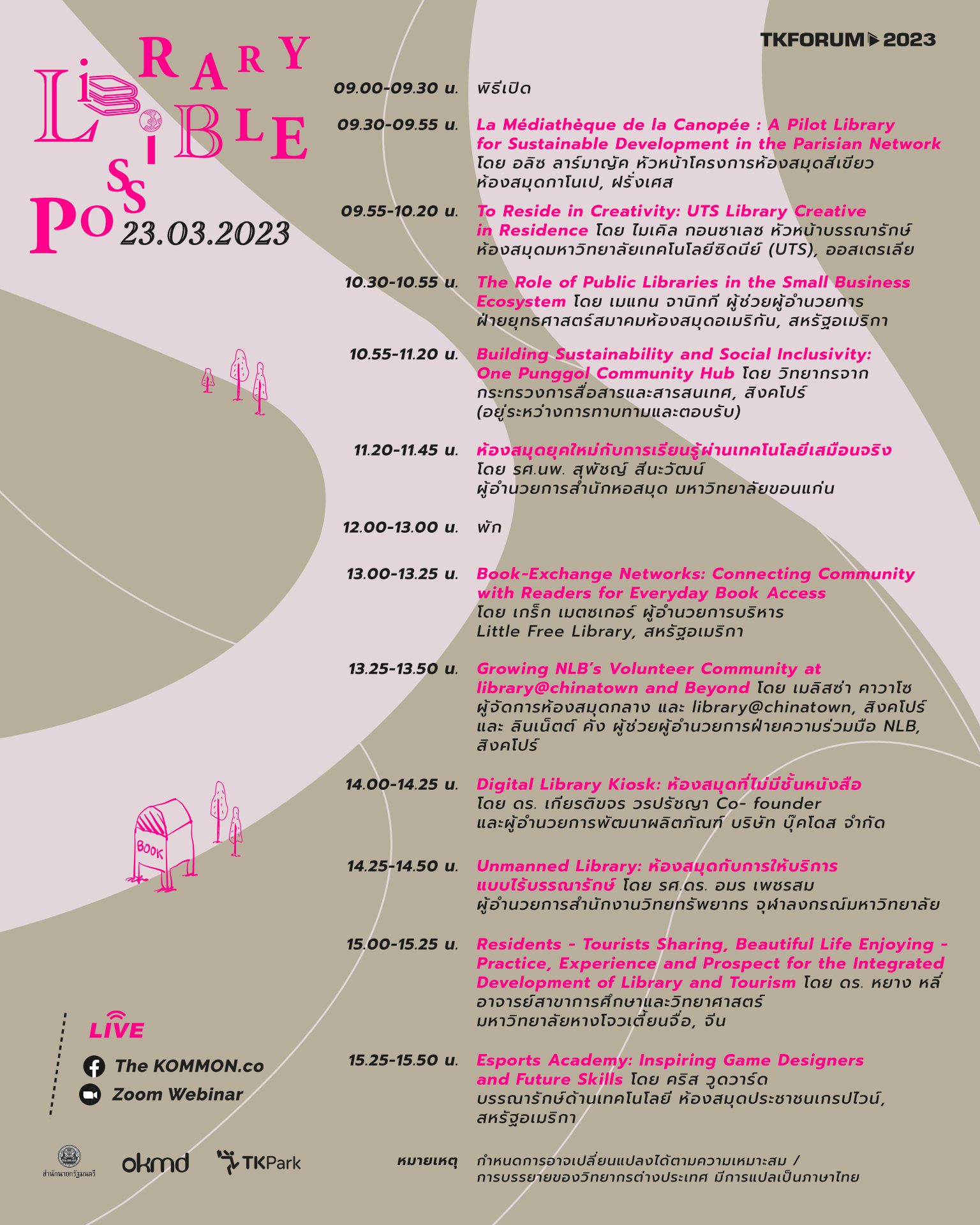 หรือรับชมถ่ายทอดสดตลอดงานทาง Facebook เพจ The KOMMON.co และ TK Park อุทยานการเรียนรู้